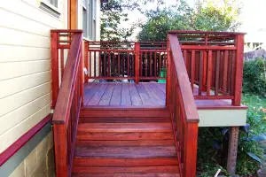 The pressure wash went as planned then, OF COURSE, it rained the night before the paint/stain was to be applied. Paul and we agreed upon an “alternate date” and all rest off as scheduled. Outside of the pressure wash, the whole job took about half a day. All was great except two paint drips on one stair (small potatoes given the size of the job!).